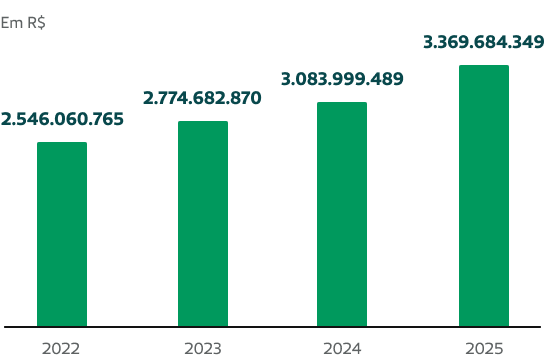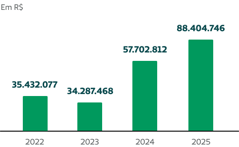 A cooperativa alcançou resultado de exercício de 2025 no montante de R$ 88,4 milhões, crescendo 53,21% quando comparado com o ano anterior.