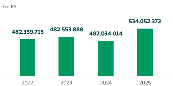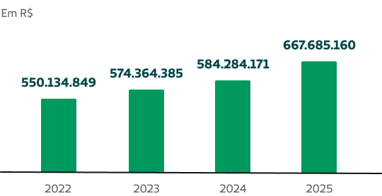 A cooperativa apresentou seu patrimônio líquido no montante de R$ 534,1 milhões em 2025, demonstrando equilíbrio patrimonial ao longo dos anos.