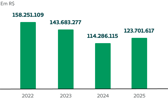 A cooperativa encerrou o exercício de 2025 com endividamento bancário total de R$ 123,7 milhões.