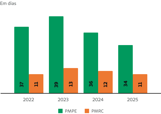 A cooperativa apresenta ao final do exercício de 2025, um prazo médio de pagamento de eventos de 34 dias e recebimento de contraprestações de 11 dias.