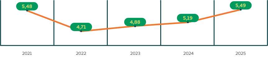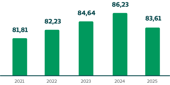 Em 2025, o nível de satisfação com os serviços da Medicina Preventiva foi de 98,33%.