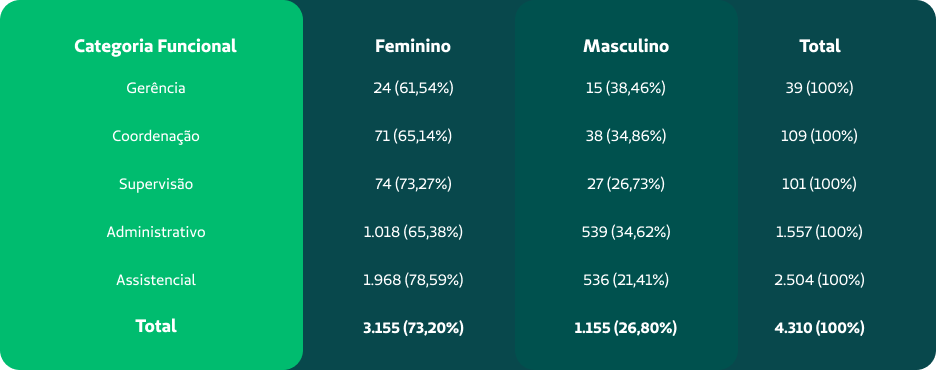 O cuidado é assegurado por equipes especializadas, com profissionais divididos entre Saúde Integral,